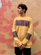 The patchwork of this sweater is made of linen. It has a small hole for the thumbs at the end of the sleeve.